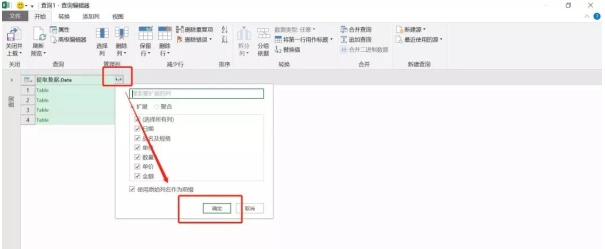 6.点一下从弹出对话框中读取数据信息内容列-右上角-select-expand-ancecull-deling运用原始字段作为做为作为前缀.