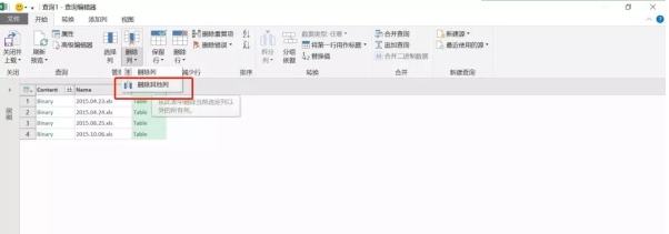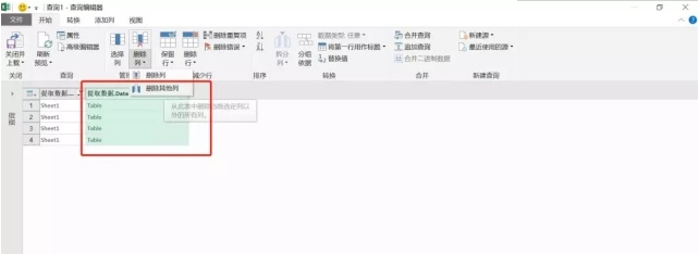 3.点一下确立,在查询在线编辑器中,选择两个列,并在一开始选项——删除列——删除其他列。