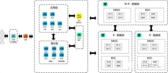 (2)第二个环节是公共云架构设计,系统软件的所有业务流程数据信息,运用使用云服务器转移专用工具慢慢地为公共云转移。针对全量转移完的数据信息,开展增加量方法填补事后造成的业务流程数据信息。运用云服务平台的协调能力,依据客户业务流程的信息量,完成数据储存資源的延展性伸缩式,例如MySQL数据库集群的伸缩式,Redis缓存文件群集的伸缩式。