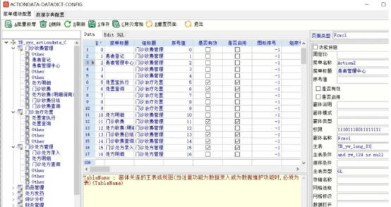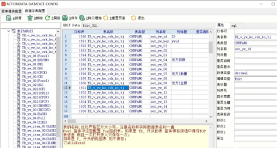 (Actiondata)视作一个系统软件控制模块,一个系统软件中能够随便随便多的控制模块;该表格中的每一行数据信息意味着一个莱单,每一个列意味着一个特性主要参数,参数配置建立这一莱单的作用。在其中‘表’和‘表种类’这两个特性配备了莱单和数据流图表(dictdata)的关系