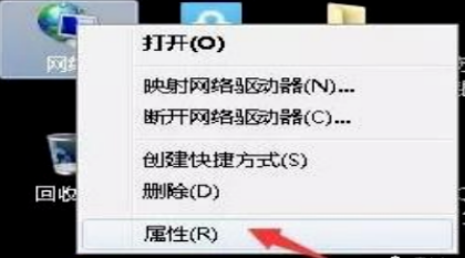 3.在A电脑屏幕鼠标右键点一下“互联网”,点一下“特性”;