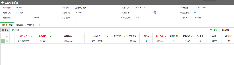 3.保存单据后,可以查看已有的销货订单列表,点击销货明细列中的绿色文字,可以查看此笔单据的明细数据。